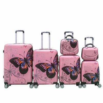 ABS PC imprimé motif anti-chute bagages sac de voyage 4 roues boîte de chariot 6 pièces ensemble en gros