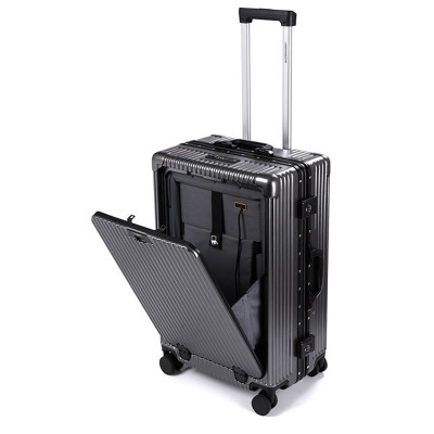 Valise de cadre en aluminium PC avec porte-gobelet Porte-batterie Port de charge USB Valise Sac de voyage 20 24 pouces