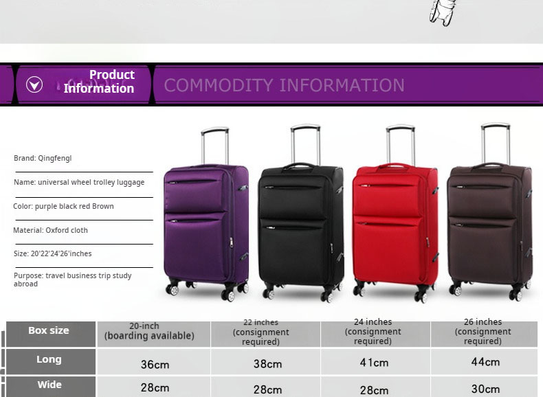 28 "chariot de grande taille à bagage de voyage avec le bagage de Malas de Viajem d'Oxford de grande capacité